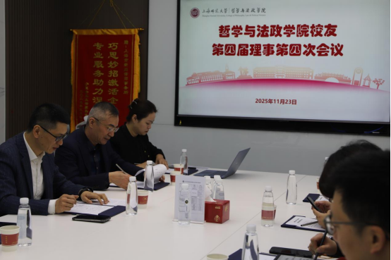 11月23日上午,上海师范大学哲学与法政学院第四届校友理事第四次会议在虹桥国际中央法务区上海大沧海新闵律师事务所隆重召开。学院党委副书记、副院长、校友会秘书长姚秋磊主持会议,学院办公室主任郑舒与吴智亮、江净、赵秦、胡如意、裘静霞、闻朝静、朱昊等出席会议,共商校友工作发展大计,凝聚校企协同育人合力。