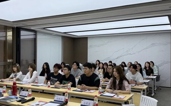 在大沧海新闵律师事务所,同学们首先观看了宣传片,对律所的整体情况、业务领域、企业文化等有了初步了解。随后,89级校友、律所主任江净律师致欢迎词,强调“党建融所建,公益融业务”的理念,提出将非诉讼纠纷解决机制挺在前面,坚持“三进驻、三满意”,做党和人民满意的好律师。