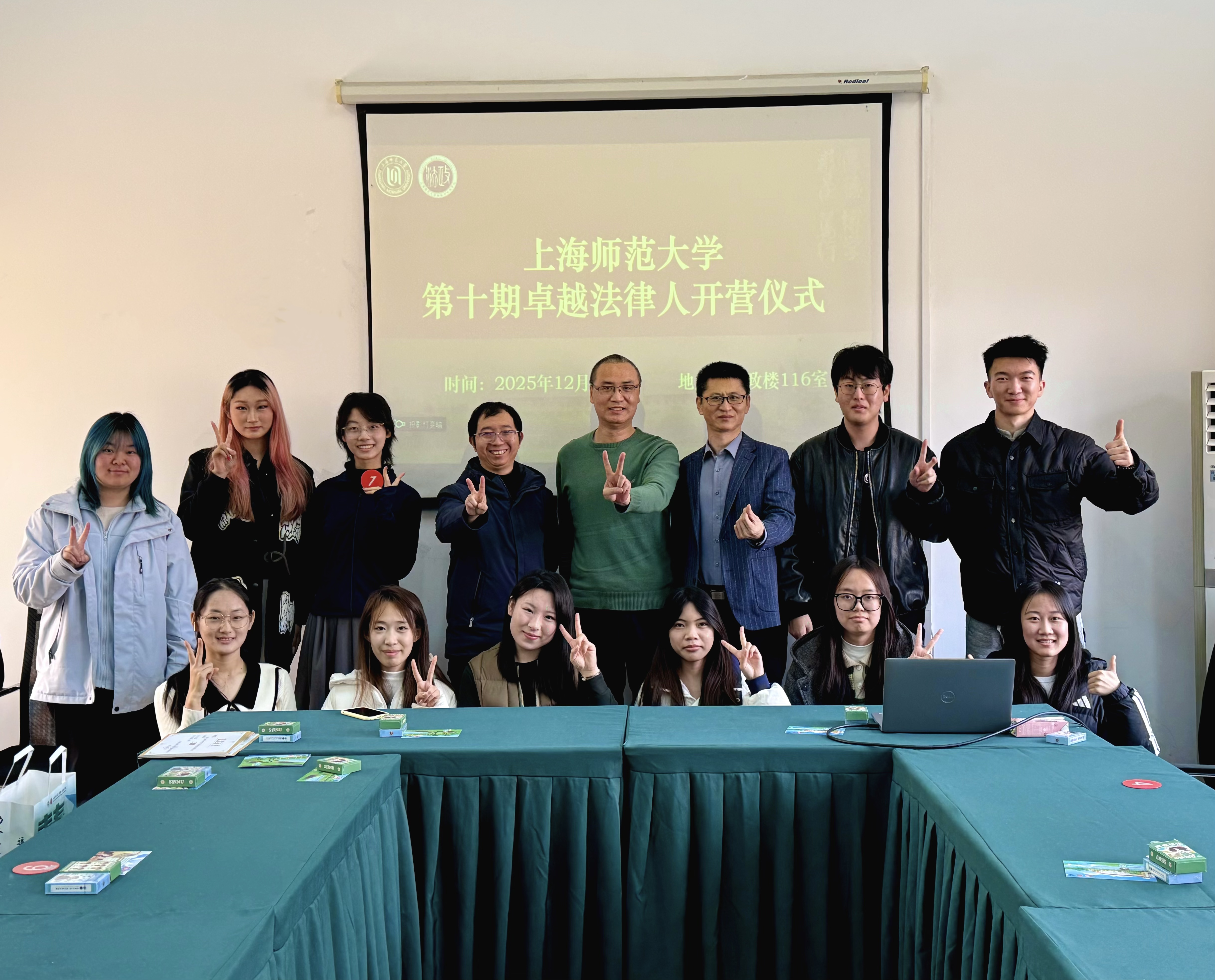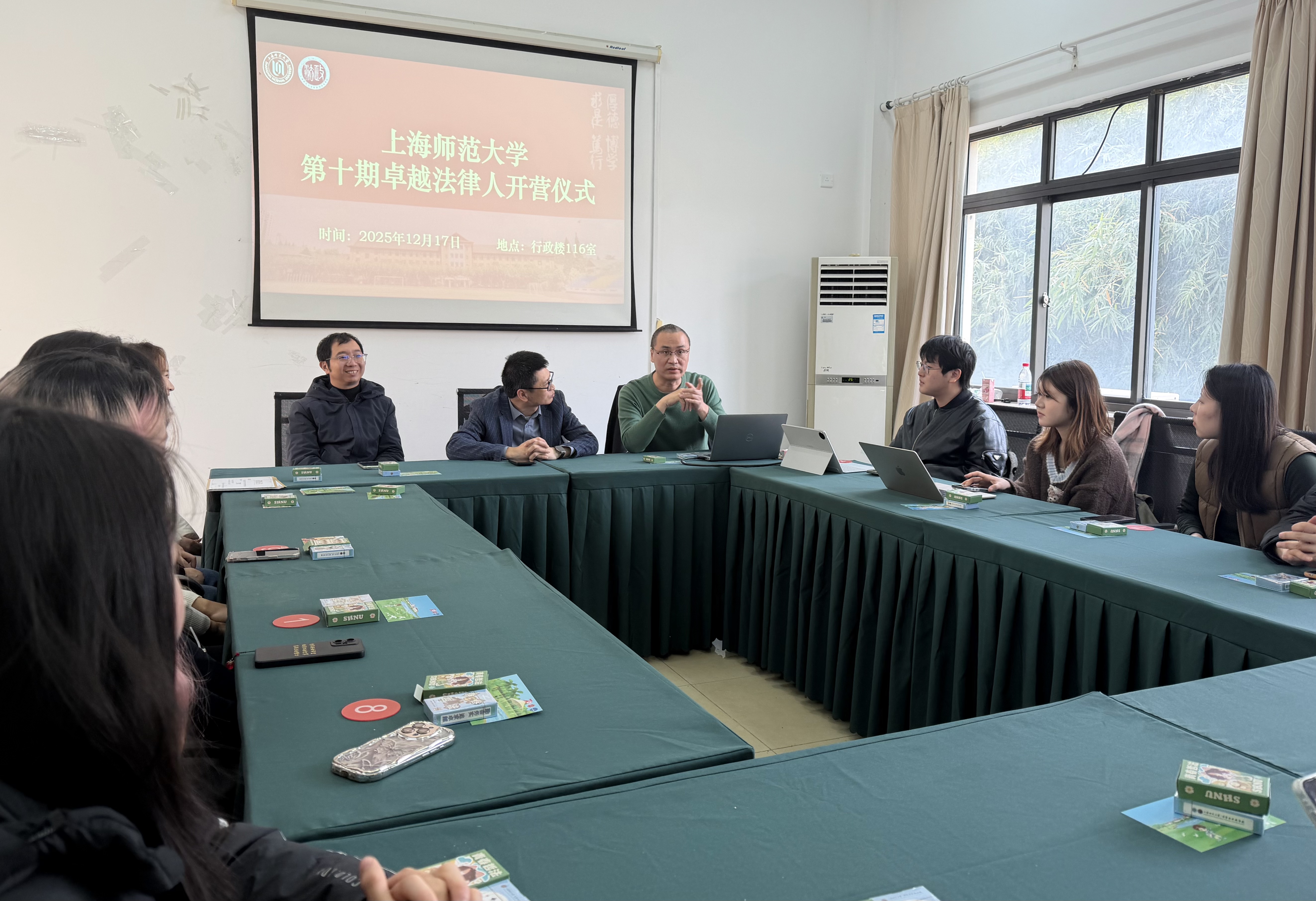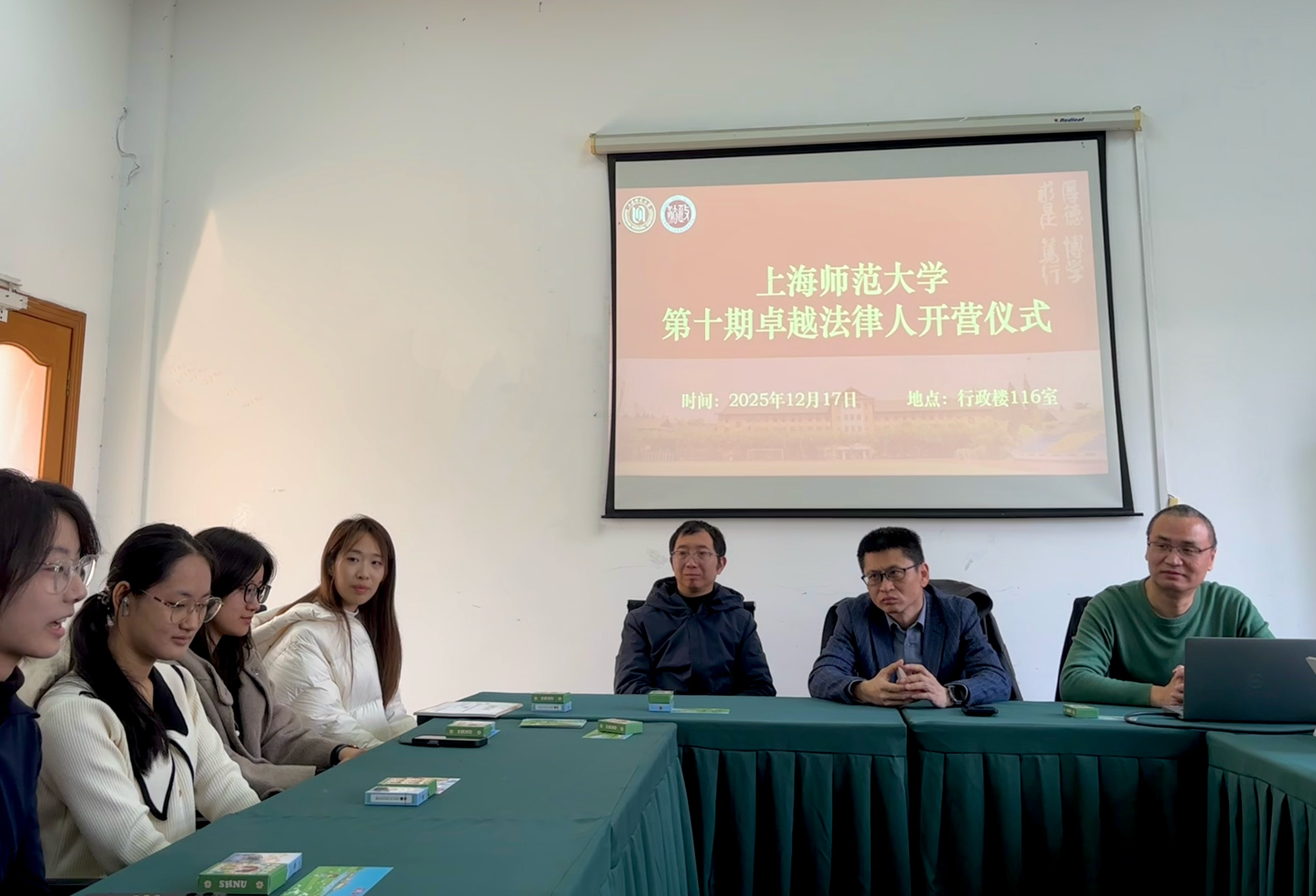 2025年12月17日,上海师范大学第十期卓越法律人训练营开营仪式在奉贤校区行政楼116室正式开始。哲学与法政学院党委副书记、副院长姚秋磊老师,训练营教练法律系何国锋副教授、法学社指导教师哲学与法政学院刘振宇副教授出席本次活动。